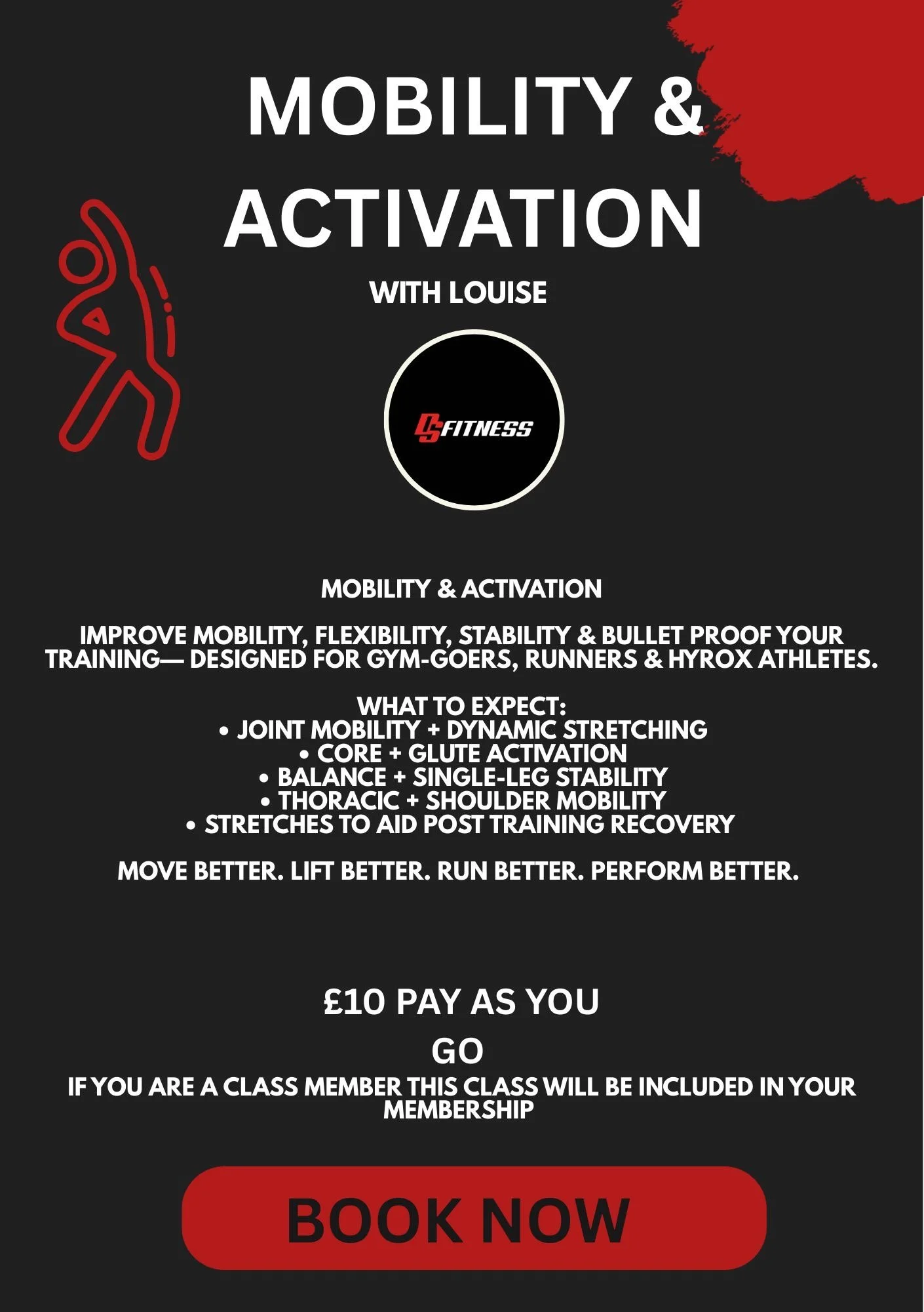 Designed for gym goers, hybrid athletes and runners, this class blends targeted mobility drills, activation work and strength-based range exercises to help you move better and train harder.